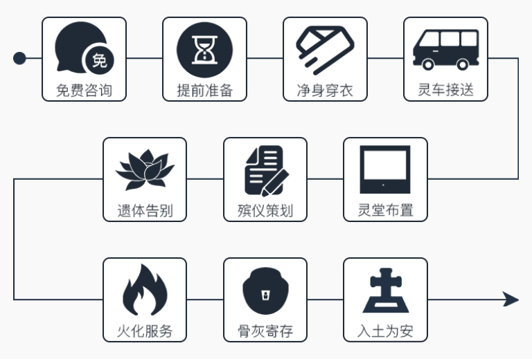 • 4.陪同出殡、礼厅布置、骨灰寄存、落土下葬等全套服务。